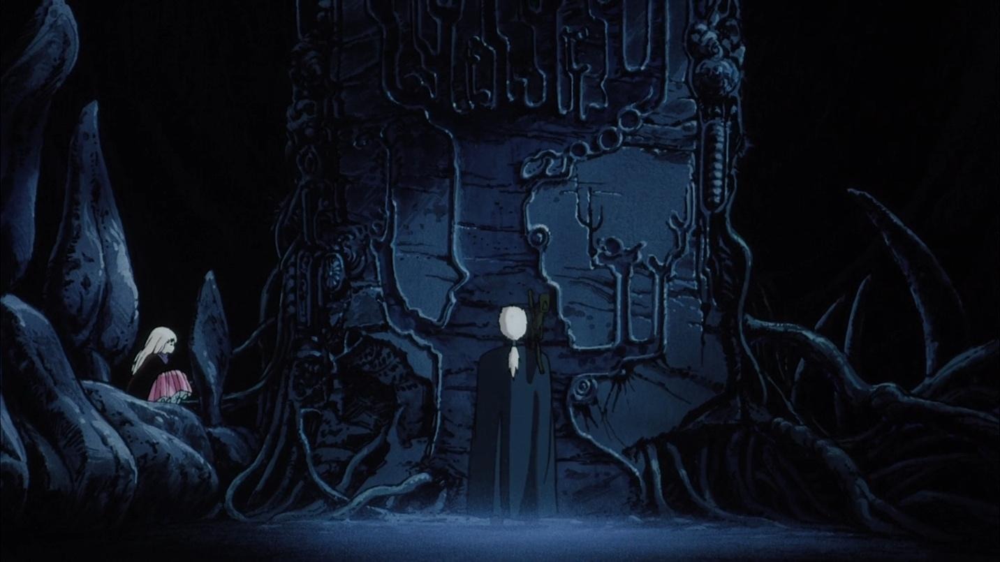 Cole claims that the film is primarily set in a post-apocalyptic future, where the Boy Soldier’s retelling of Noah’s Ark provides an ideological frame by which we can understand the nature of this world. The nuclear holocaust is the natural vehicle, the primary backdrop of Angel’s Egg, whereas the Biblical story of the Flood serves as the metaphorical tenor of its dystopian condition. As the Boy philosophizes, “Maybe no one really exists and it is only raining outside” (Oshii 00:44:11). His speculation alludes to the sheer barrenness of their surroundings: as far as both he and the Girl know, there is no sentient survivor beside them. Nature has overtaken what remains of civilization.
