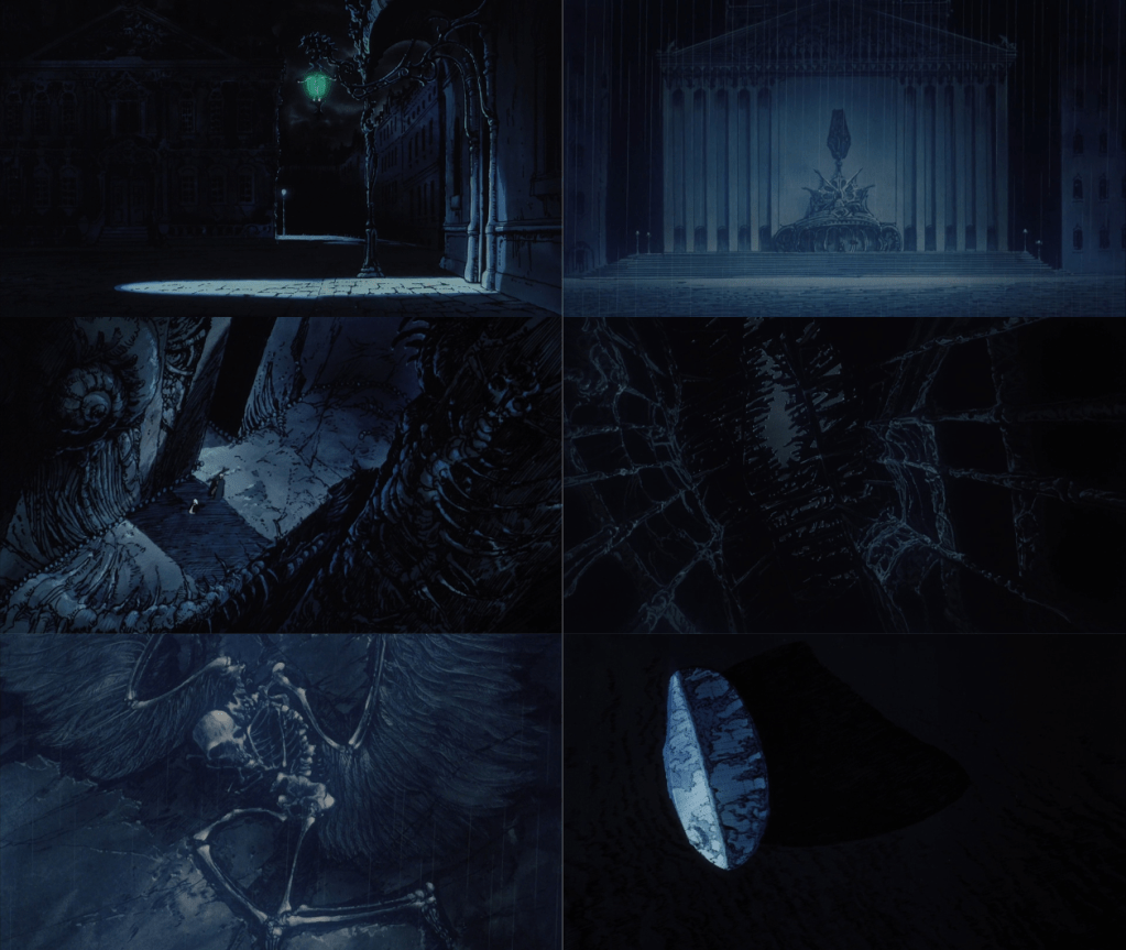 Rather, I hope to use this post to showcase the wonderful art and ambiguity that are inherent in the piece of media it discusses. Instead of hoping to solve the mysteries behind the fantastical or allegorical concepts of the world, the real-life or philosophical sources of inspiration that Oshii draws on, or whatever contrasting forces that the Girl and Boy Soldier represent, why not accept that all of these possibilities hold true? To borrow from Princess Weekes’ delightfully insightful essay on Robert Eggers’ Nosferatu (2024), “There’s been a ton of . . . simplistic back-and-forth [discourse]” (24:53-24:56) regarding the nature of the relationship between its female protagonist Ellen and the antagonist Count Orlok. Either Ellen is an innocent, hapless victim at the hands of Orlok, or Orlok himself represents her suppressed sexual desires, which would render their encounters as expressions of catharsis. But Princess Weekes insists—and so do I—that arguing for one analysis over the other as a film’s ultimate meaning will shallow its narrative depth. True complexity lies in multivalence. Suffice it to say, it isn’t impossible to recognize multiple meanings and interpretations as viable in their own right. Perhaps we need to engage with and embrace ambiguity to even begin to grasp a work like Angel’s Egg.